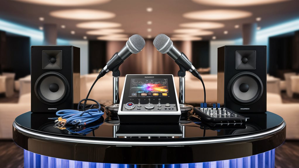 Good sound gear is key to karaoke at work. Two mics that cut noise help voices stay clear, while strong speakers (500W and up) make sound fill the room right.